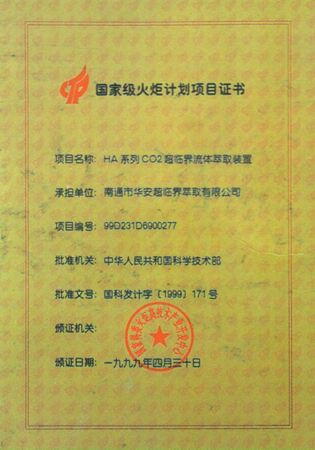 火炬計劃項目證書